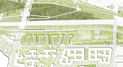 Quartier mit 326 Wohnungen, Gewerbe und einem Kindergarten 50.400 m² BGF